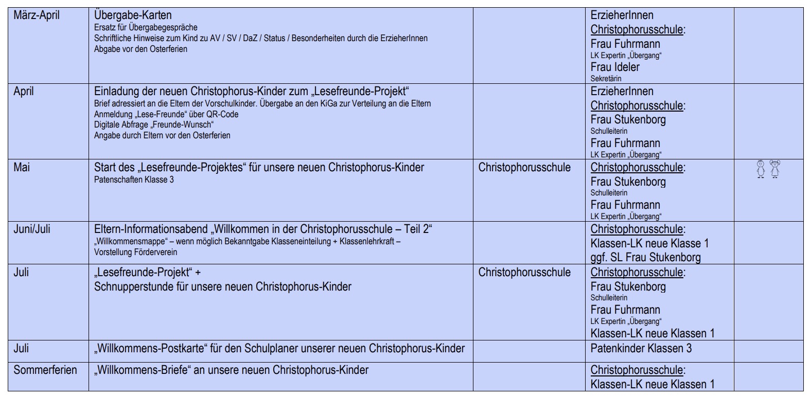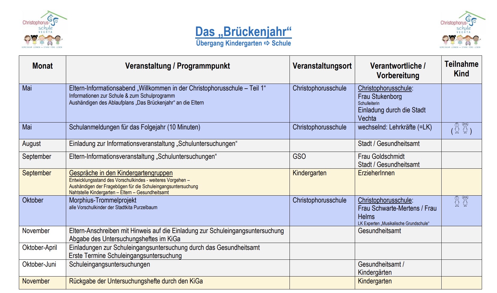 Es folgt eine Übersicht der Termine im „Brückenjahr“ an der Christophorusschule: